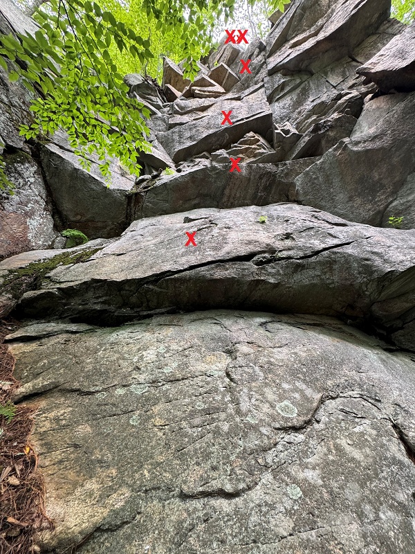 ascent. There are four cliffs that I have arbitrarily named by their location with the