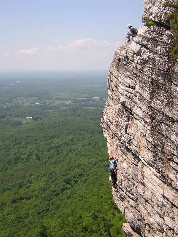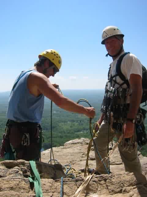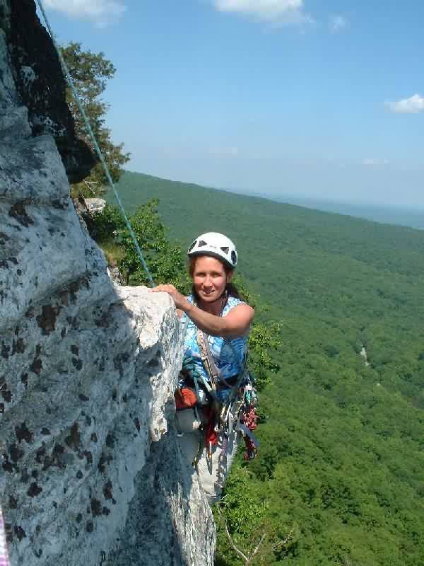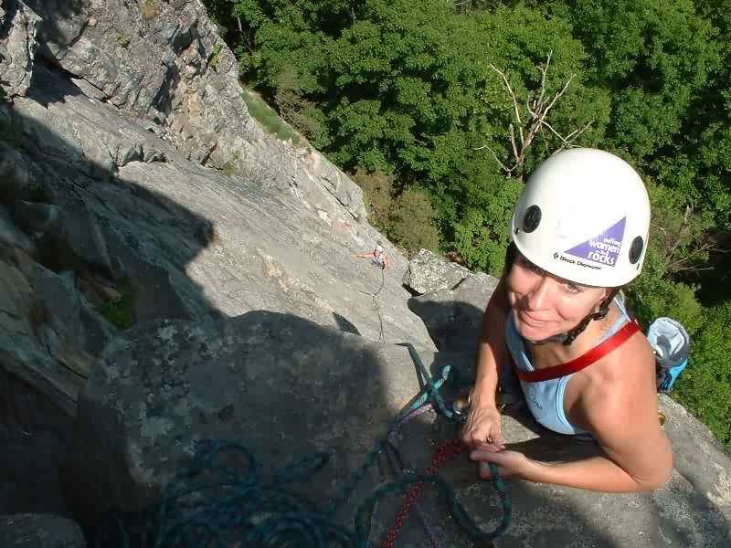 Barbara belaying Jeannine up.